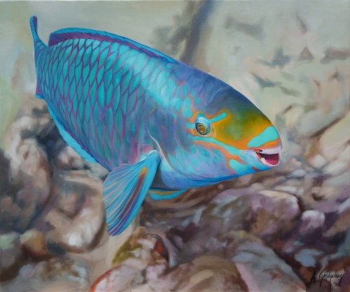 Armando, Resilience/Queen Parrotfish, 50x60cm, Acrylic on Canvas, 2025